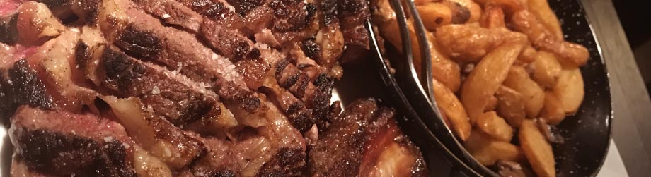 La côte de bœuf grillée, pommes de terre grenaille rôties